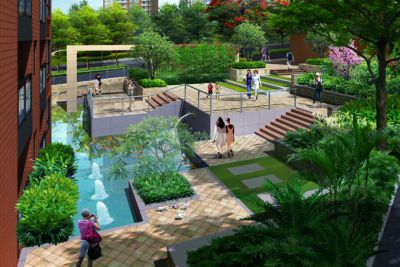 蓮塘地塊羅湖區保障性住房項目園林景觀設計立足于強化總體規劃及建筑設計特色,引入自然綠色概念,根據澳洲昆士蘭省北部的熱帶度假區為模式的景觀設計理念,燦爛的陽光配合熱帶雨林般的植物群落,復制極具自然的、茂盛的熱帶植物群落,利用充沛雨量的回收系統所帶來的充足水源營造自然溪流、水景,根據高差變化設置特色休閑臺地空間,營造一個立體化的充滿自然氣息的住戶花園。